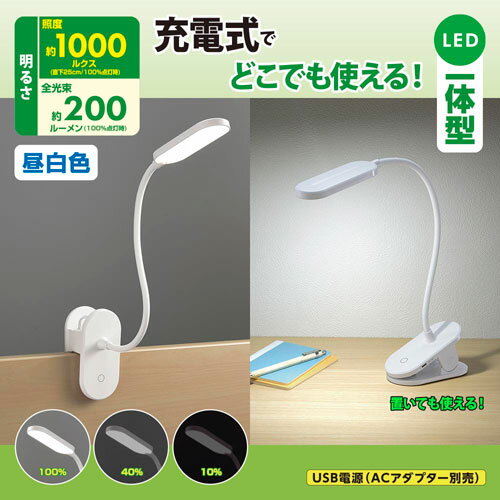 オーム電機 充電式 LEDクリップライト 昼白色 ホワイト LTC-LC16R-W |