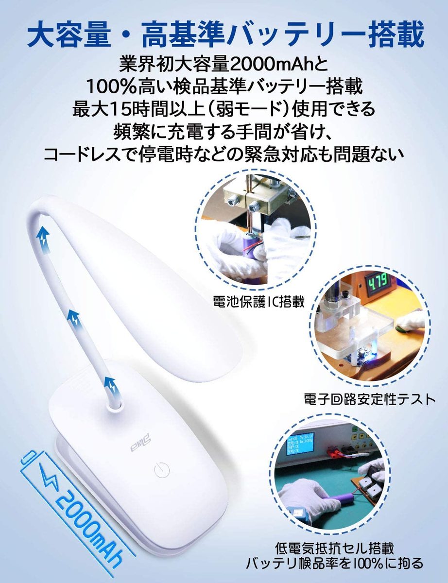 クリップライト LED デスクライト 2000mAh usb 充電式 充電/差込兼用 3階段調光 360度回転可能 タッチセンサー式 電気スタンド 勉強 目に優しい 寝室 読書灯 |