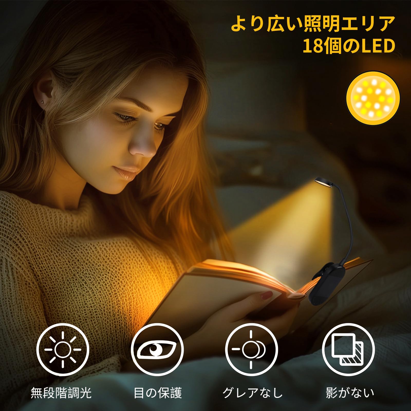 【最大35%クーポン♪超目玉】 【楽天1位 】 ブックライト 読書ライト 読書灯 クリップライト ベッドの読書 目に優しい 読書用ライト 車 ベッドの読書のため 寝ながら しおり クリップ LED 本につける 小型デスクライト 5段階調光 オレンジ usb充電式 |