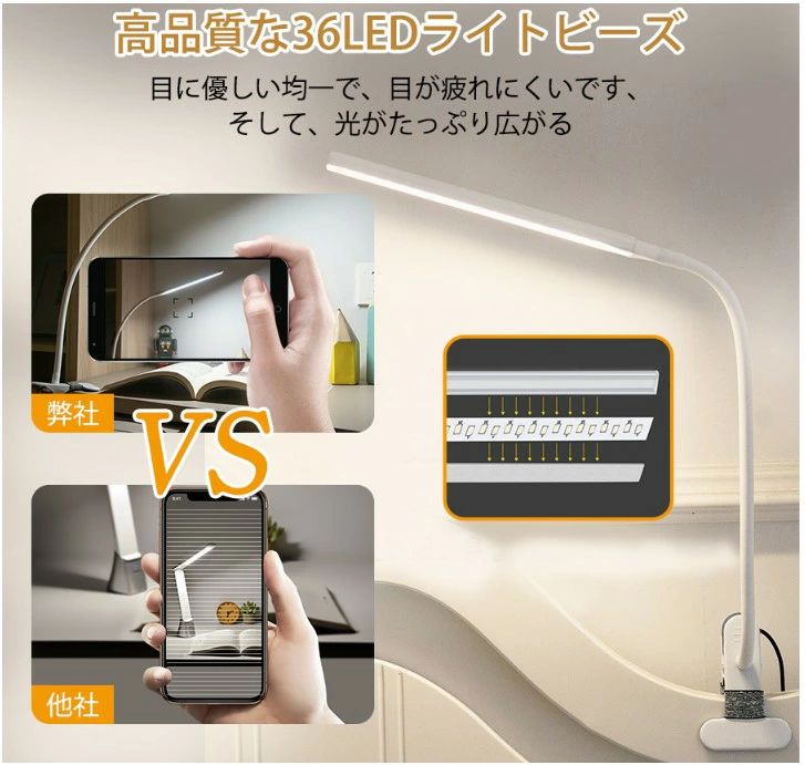 LEDデスクライト 学習机 目に優しい クリップライト おしゃれ 読書灯 高品質 高輝度 360°回転可能 卓上ライト 省エネ メモリー機能 寝室/オフィス 学生/仕事適用 USB充電式【停電防災対策】【10段階調光&3段階調色】 |