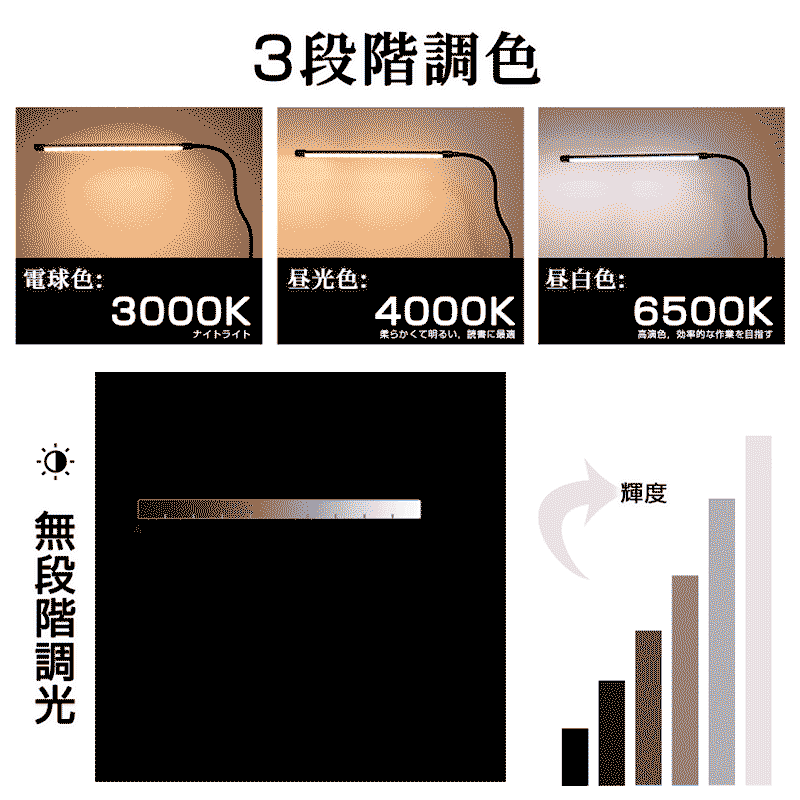 デスクライト 卓上ライト 電気スタンド アームライト クリップライト 読書灯 目に優しい無段階調光 3段階調色 平面発光 360度回転アーム 省スペース 省エネ 2500ルクス |