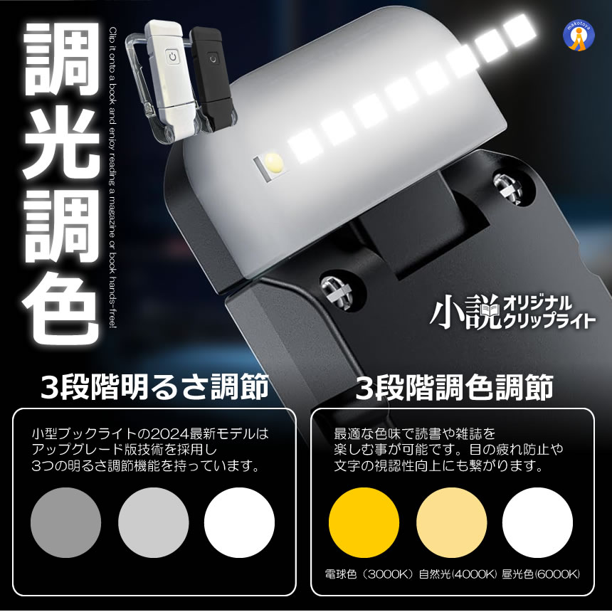 小説 ライト 読書灯 LED クリップ式 ハンズフリー 3段階 明るさ調節 調色 ブックライト クリップライト 800mAh USB充電式 小型 ミニ コードレス 角度調整可能 折りたたみ 読書ライト 寝室 送料無料 BOOKRAI |