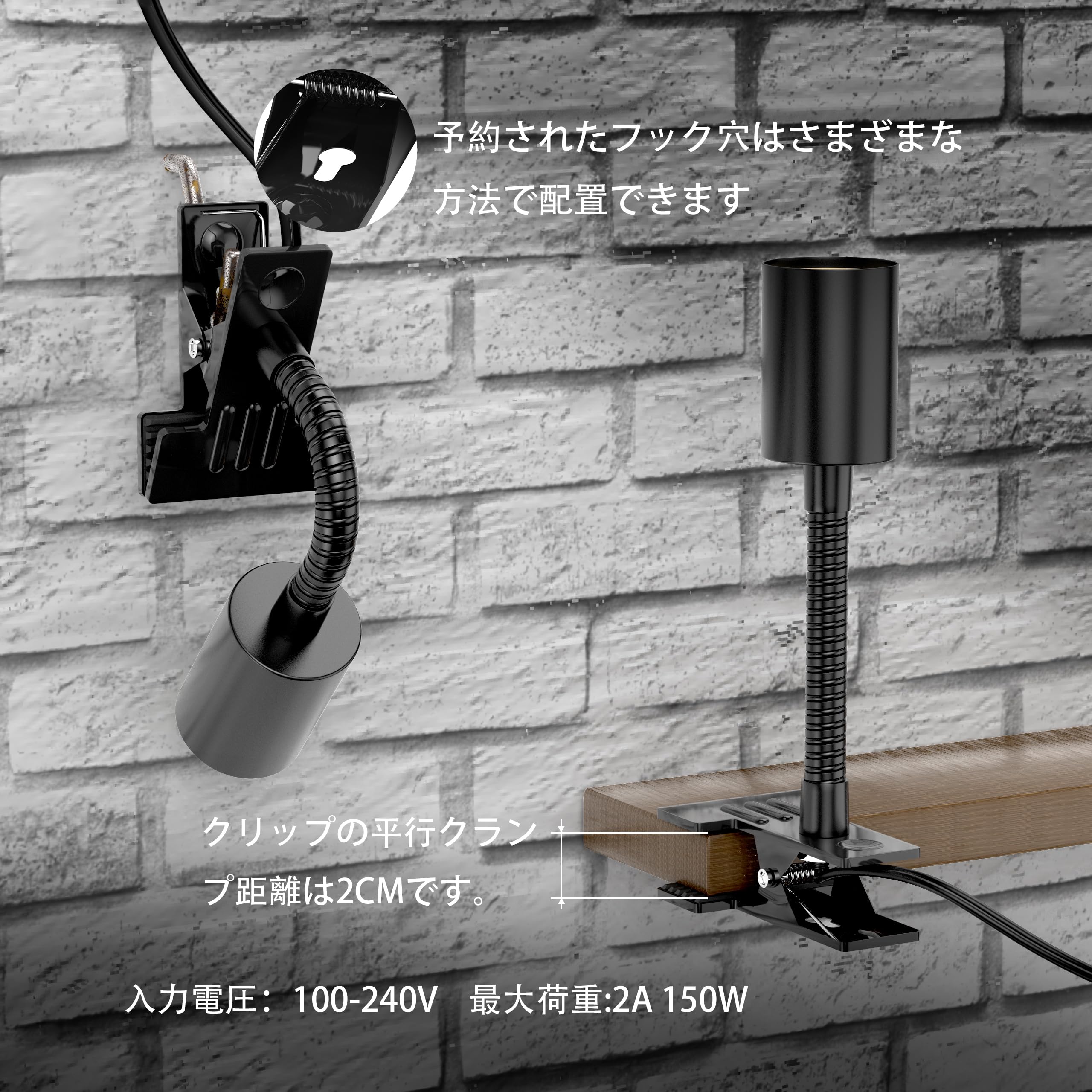 Pispoer 電球ソケット E26、クリップライトソケット、植物育成ライトに適しています、スイッチ付き 1.65 メートルのコード、ネックチューブの長さ13.5 CM,ブラック,2個入り |