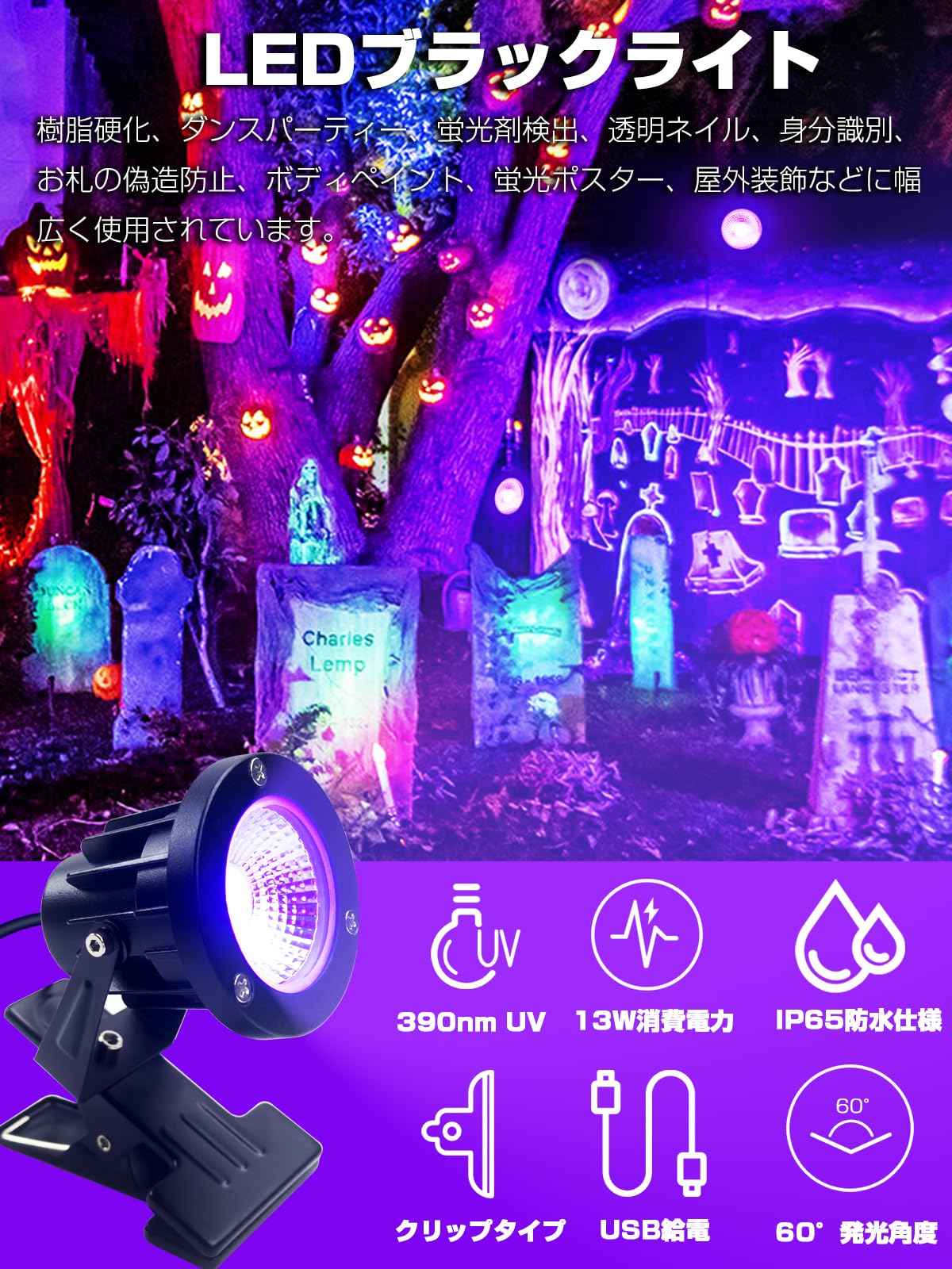 ブラックライト 13W UV紫外線ライト クリップライト B給電 I65防水仕様 舞台照明 雰囲気作り 硬化ライト 樹脂硬化に適合 モデル乾 |
