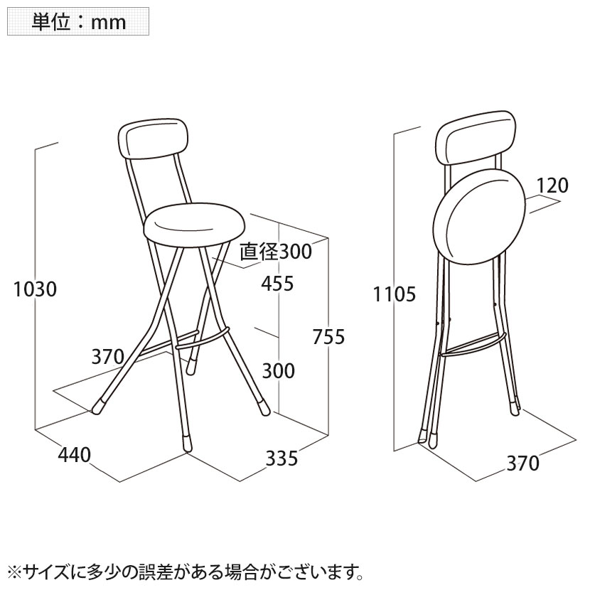 ラウンドクッションチェア ハイトール フォールディングチェア コンパクト 耐荷重80kg 幅370×奥行440×座面高755mm |