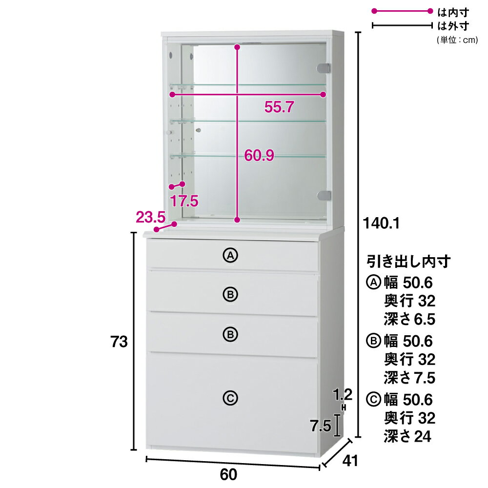 【クーポン10%OFF 1/30迄】 LEDライト付き 楽屋ドレッサーシリーズ ガラスキャビネット付き チェスト 幅60cm リビング リビング収納 585304 \LINE友だち登録でクーポン/ |