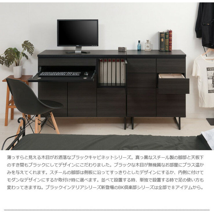日本製 完成品 キャビネット アンティーク ブラック 幅106 国産 デスクタイプ おしゃれ 黒 男前 木目調 木製 モノトーン 北欧 収納 リビング(代引不可)【送料無料】 |
