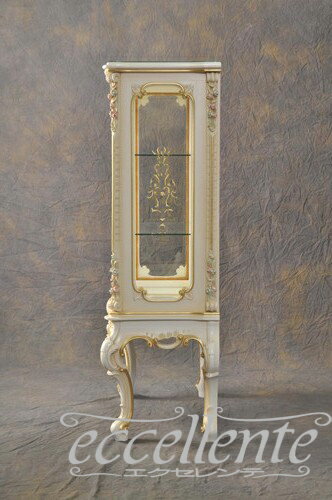 SI-0508 イタリア製 1ドアグラスキャビネット アイボリー/ハンドペインティング 【SILIK-シリック】【イタリア高級家具】 |