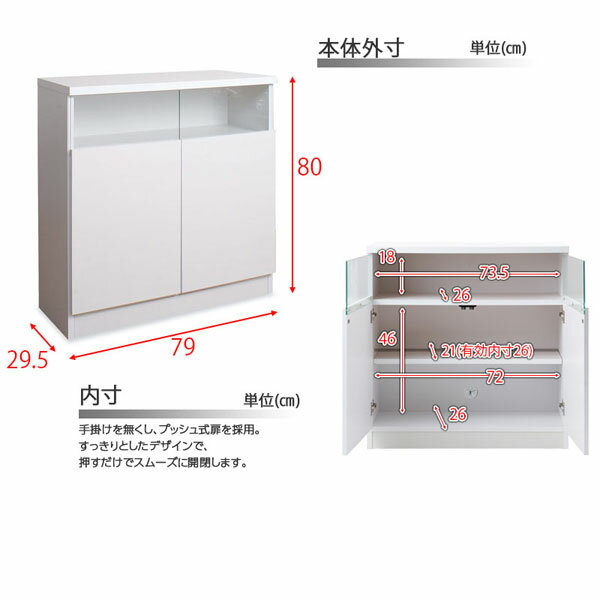 カウンター下収納 奥行30 【送料無料】完成品【リビングキャビネット幅80扉 ホワイト NO-0001】 国産 高さ80 ガラス扉 リビング収納 ルーター収納 配線穴あり |