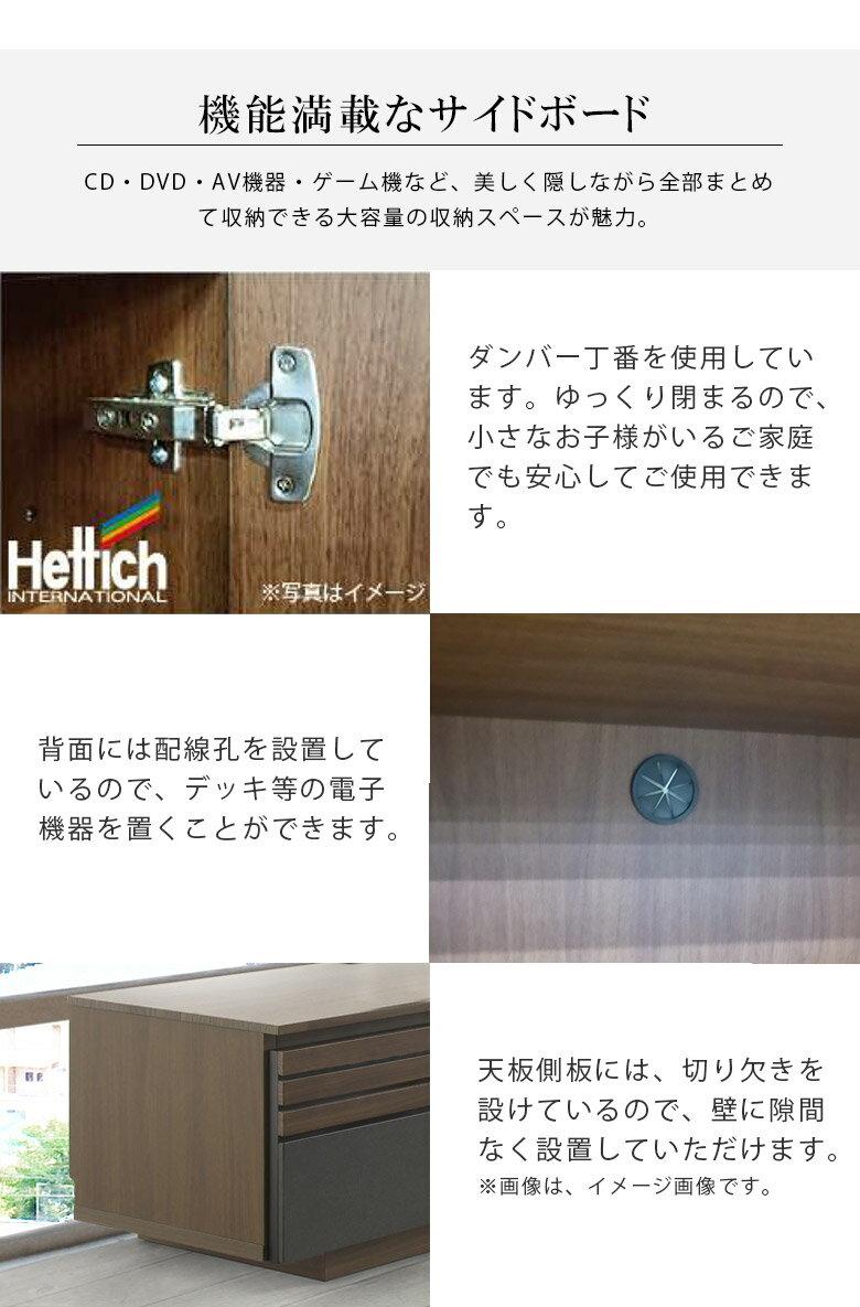【全商品に使える11%offクーポンあり!!】 サイドボード 収納 120cm幅 リビング収納 おしゃれ モダン 幅120 リビング サイドキャビネット 開き戸収納 ダンパー丁番 ゆっくり閉まる 木目 ウォールナット柄 抽象柄 配線孔 |