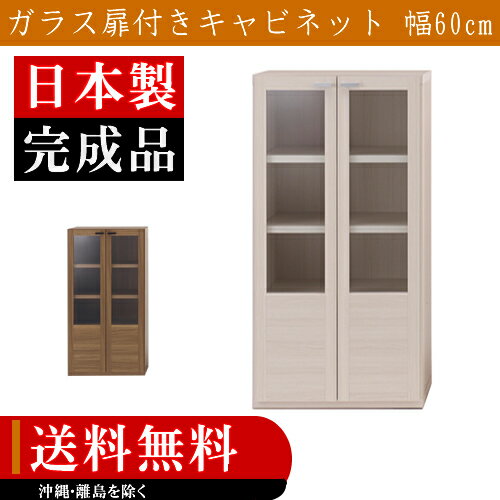 キャビネット 幅60 収納家具 007: キャビネット ガラス 木製 ウォールナット ホワイト 白 リビング収納 棚 送料無料 K-Style |