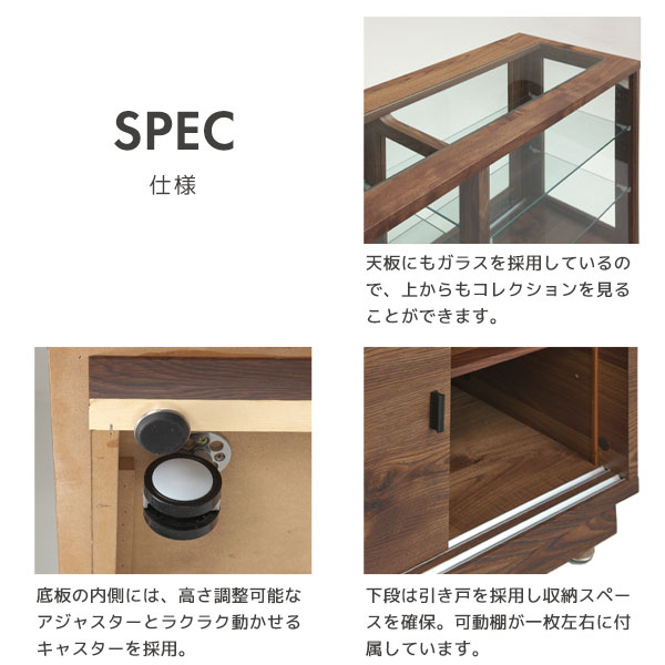 コレクションボード キャビネット 什器 リビングボード ナチュラル ガラスケース キャスター付き ディスプレイ収納 【ベック 130キャビネット】 |
