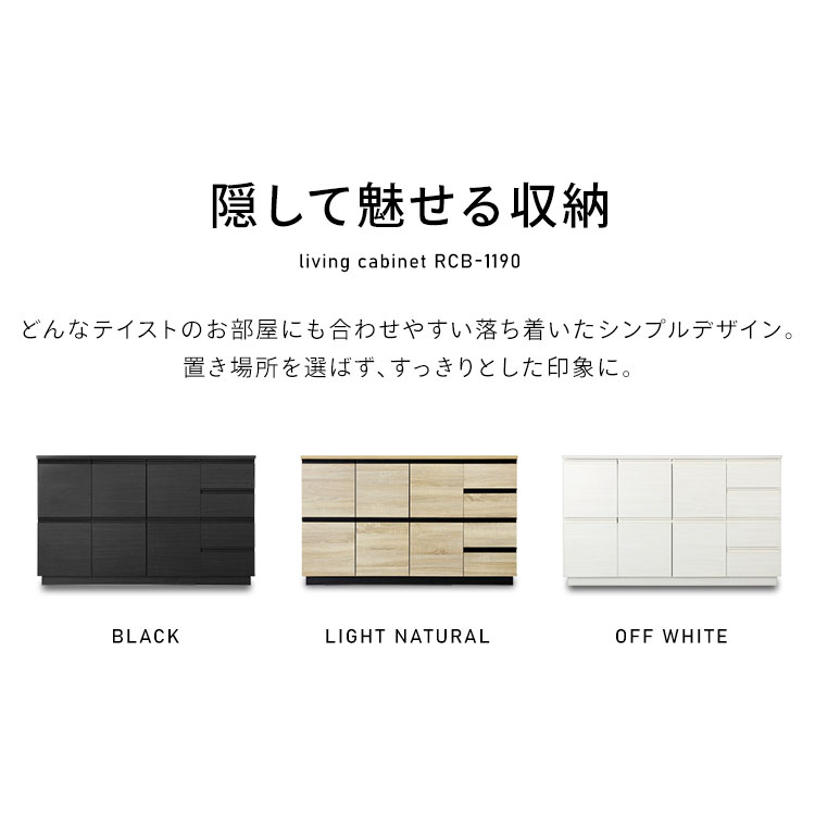 【組立サービス対象】リビングキャビネット RCB-1190 ブラック ライトナチュラル オフホワイト キャビネット チェスト ラック 棚 扉収納 引き出し 収納 組み立て 木目調 木製 リビング 居間 家具 インテリア おしゃれ アイリスオーヤマ【HS】 |