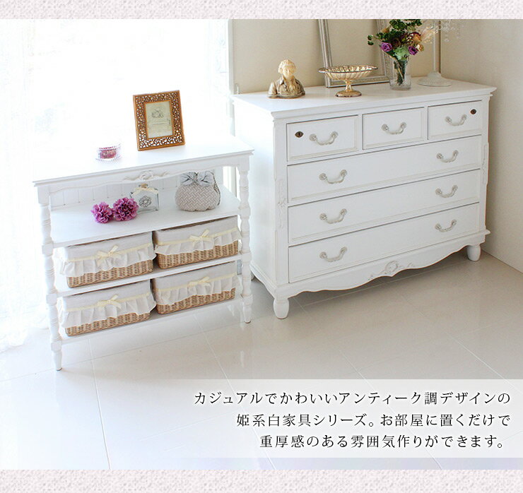 【10%クーポン配布中★2/1(日)限定】クラシカルデザイン キャビネット 幅75cm [収納かご4個付き](アンティーク家具 白家具 白 ホワイト アンティーク調 ヨーロピアン クラシック家具 洋風家具 姫系家具 収納家具 木製 オープン収納) |