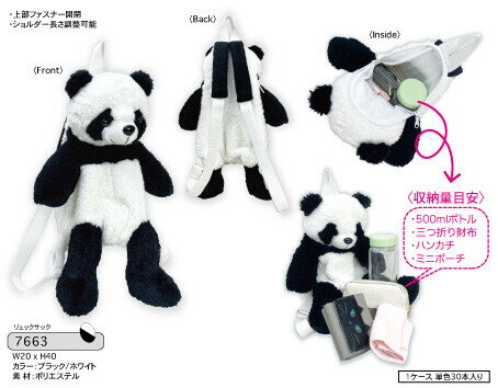 【PLUSmm】ぬいぐるみリュック パンダ 7663 【送料無料】(リュックサック、バッグ、カバン、かばん、ぬいぐるみ、キャラクターグッズ) |