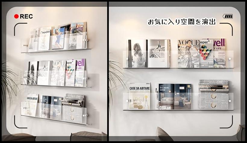【楽天ランキング1位入賞】マガジンラック 壁掛け マガジンスタンド INS風 おしゃれ 北欧 アクリル製 雑誌ラック 壁掛け棚 本棚 壁面収納 パンフレットスタンド(透明, 100cmx15cmx5cm) |