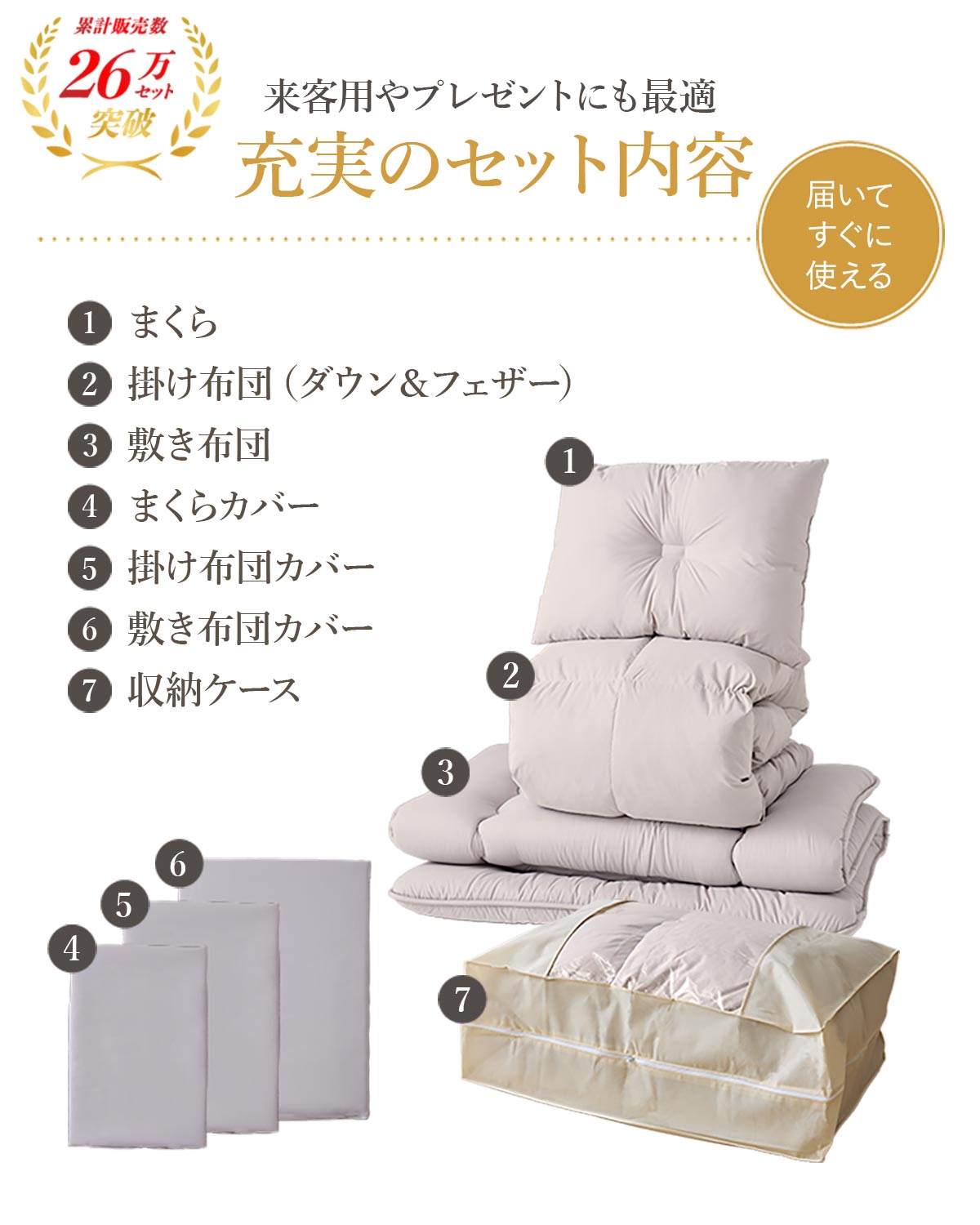 布団セット シングル 7点セット 羽毛入り掛け布団 1.8kg ふとんセット ダウン入り 洗えるカバー付き 来客用 羽根布団 枕 布団カバー 収納袋 収納ケース 掛け布団 敷き布団 客用布団 掛け敷布団セット 組布団 寝具セット 軽量 ●[送料無料] |