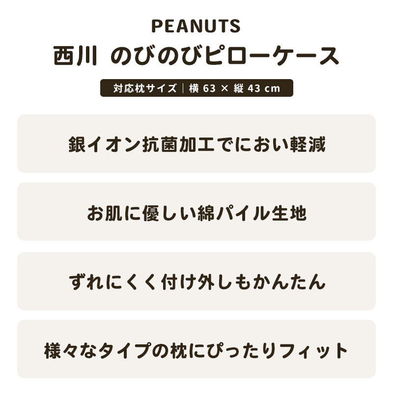 【LINE登録で100円OFFクーポン】西川 のびのびピローケース 34×64cm 綿 SNOOPY スヌーピー ピーナッツ PEANUTS ピローケース パイル タオル 枕カバー まくらカバー のびのび フィット |