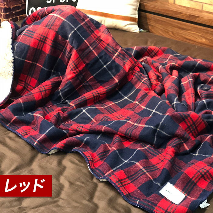 コートニーブランケット140X200 ネイビー/レッド あったか素材!チェック柄がとってもおしゃれ!あったか素材のブランケット!シープボア プレゼント ひざ掛け 毛布 大判 Shimadaya【あす楽】【送料無料】【冬物特集】【SS2503】 |