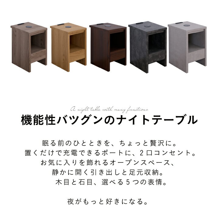 【ポイント5倍★1月24日20時〜29日2時迄】ナイトテーブル 幅30 サイドテーブル 引き出し付き ベッド ソファ おしゃれ フルオープンレール コンセント 置くだけ充電 充電 木目 ブラウン ナチュラル ストーン柄 石目調 ブラック グレー 完成品 |