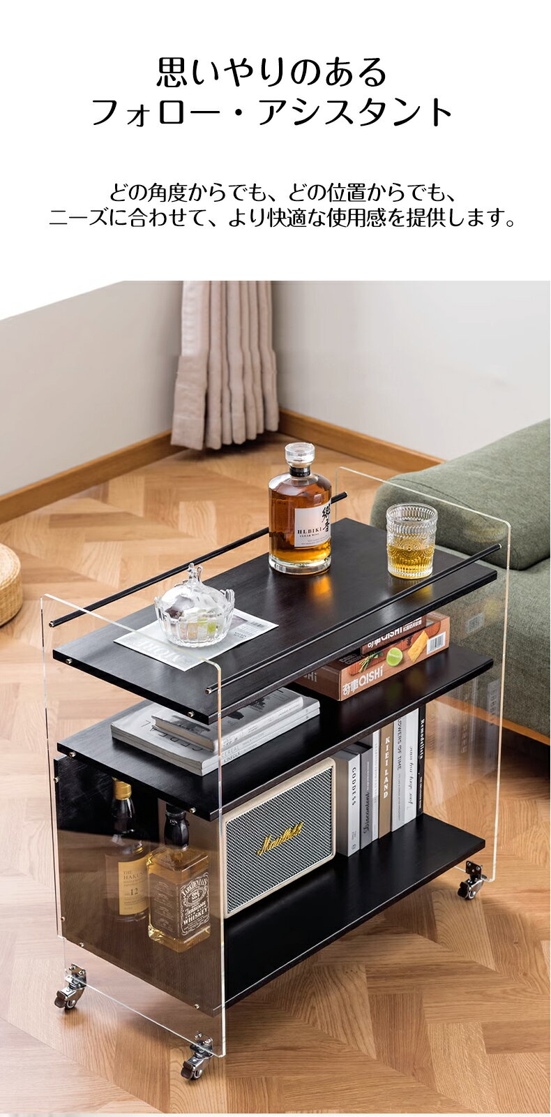 サイドテーブル キャスター付き おしゃれ ワゴン スリム デスクサイドラック キッチン リビング テーブル ナイトテーブル サイドチェスト カフェテーブル マガジンラック ミニデスク ベッド ソファ アクリル シンプル 透明 北欧 収納 |