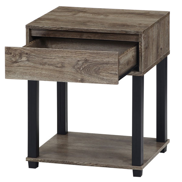 【クーポン配布中】ウッディーグレー : シンプルスクエア ベッドサイドテーブル 棚引き出し付【camyel】 ウッディーグレー(silver) ナイトテーブル 寝室 フリーラック 棚 ベッドテーブル カジュアル |