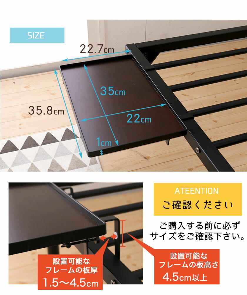 ベッド用オプション 後付けちょい置きサイドテーブル 幅35cm 完成品 日本製 国産 ベッド用サイドテーブル スチール フチ付き ブラック ホワイト シンプル ナイトテーブル サイドフレーム 後付け棚 新商品 |