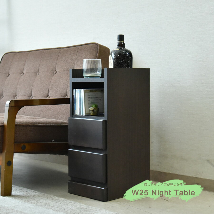 ナイトテーブル 消灯台 幅25cm 木製 完成品 日本製 大川家具 収納スペース付き コンセント付き ブラウン ホワイト ウレタン塗装 |