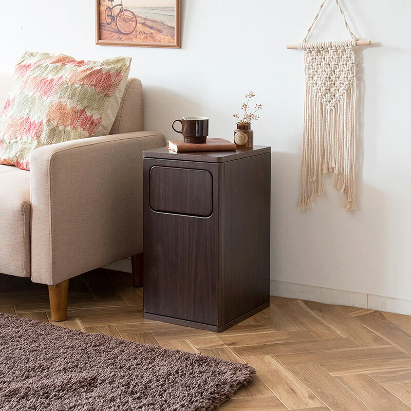 商品名| EPO-ST【1台 単品】 サイドテーブル ナイトテーブルカラー| ブラウン色/2色からサイズ| 幅25×奥行き30×高さ48cm ミニテーブル ウォールナット ブラウン色 ゴミ箱 ごみ箱 |