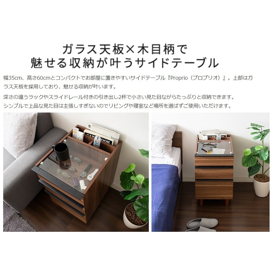 [最大P47倍お買物マラソン対象] サイドテーブル ナイトテーブル ガラス 幅35 奥行47 高さ60cm ST-203 Proprio プロプリオ 木製 ガラステーブル 収納 スリム 引き出し テーブル ベッドサイドテーブル コレクションケース リモコン マガジンラック 35 47 60 北欧 おしゃれ |
