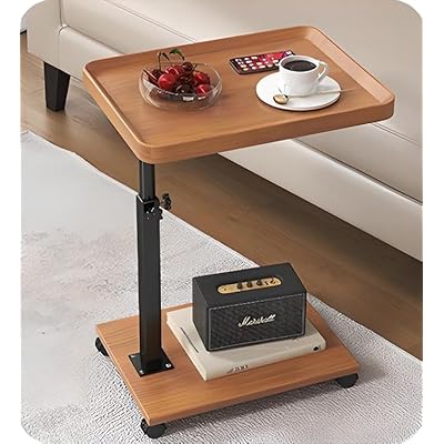 サイドテーブル キャスター付き ベッドサイド テーブル 昇降式 木目調 簡易テーブル コの字型 高さ調節可能 移動便利 ナイトテーブル 小さい 一人暮らし 食卓 小型 (ナチュラル 40*30*45~85cm) |