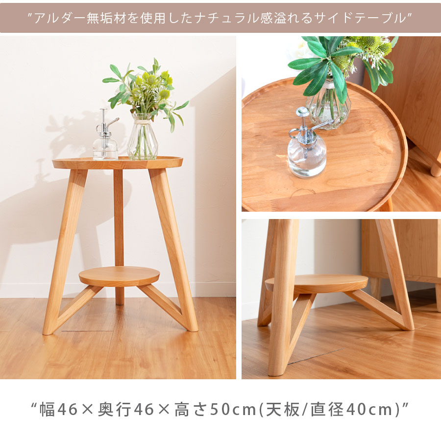 テーブル おしゃれ 円形 サイドテーブル 高さ50 北欧 ナイトテーブル 木製 無垢材 円 丸型 置物 ナチュラル ブラウン 幅46 小さめ オブジェ アルダー オイル塗装 かわいい 棚 インスタ映え |