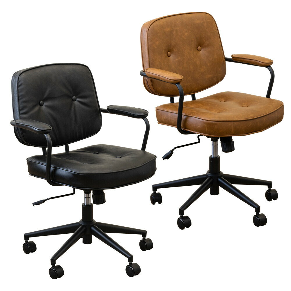 オフィスチェア デスクチェア 幅60cm 座面高44-52cm パソコンチェア 椅子 事務椅子 学習椅子 レザー 肘掛けあり 昇降式 回転式 キャスター有り おしゃれ アンティーク ブラウン ネイビー ブラック ゴードーチェア (BR/NV/BK) 【送料無料】 |