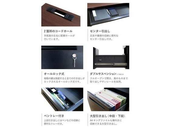 【法人様限定】スチールデスク ブラック EX 両袖机 オフィスデスク 引き出し 幅1400×奥行700×高さ720mm 配線穴 事務机 ビジネスデスク 事務デスク ワークデスク デスク 黒 幅140cm 奥行70cm 作業デスク パソコンデスク PCデスク |