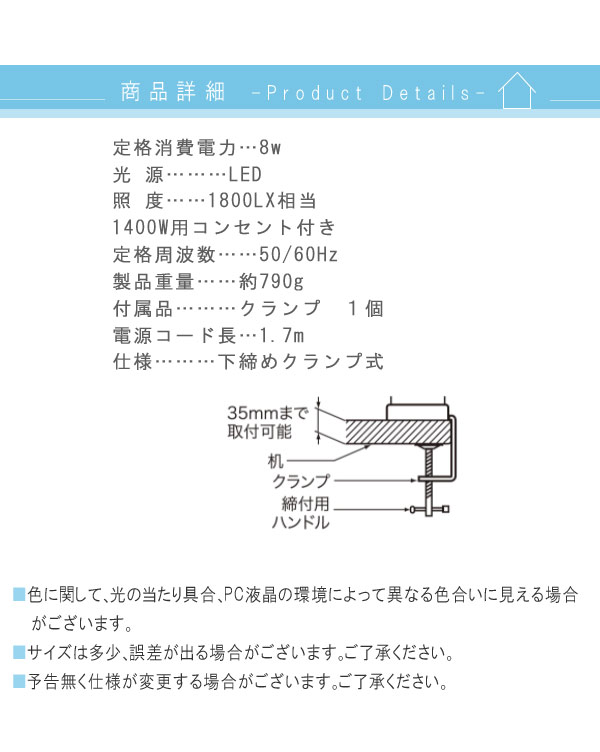 デスクライトのみ ホワイト ブラック LED ブルーライトカット 目に優しい クランプ式 クランプタイプ 太陽光に近い最高クラスの高演色 LEDライト シンプル スタイリッシュ おしゃれ オシャレ お洒落 勉強 宿題 仕事 趣味 送料無料 QSM-140 堀田木工 家具 P5 |