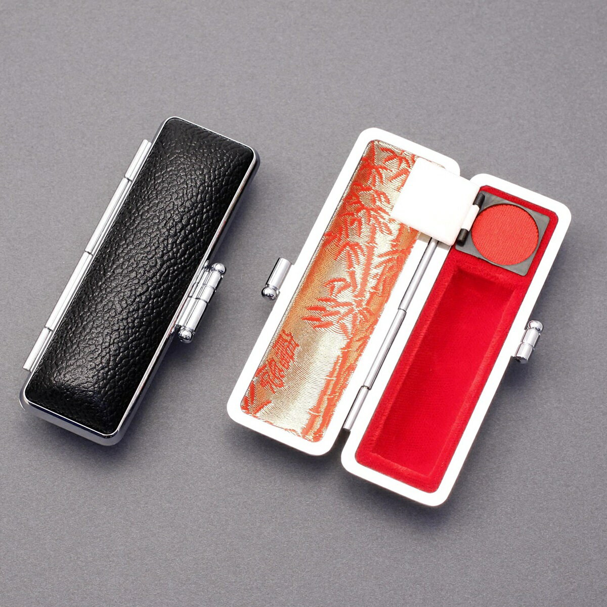 特価:580円~印鑑ケース 朱肉付 はんこケース ハンコケース 印鑑入れ かわいい 個人印鑑ケース 銀行印・実印サイズ10.5mm~18.0mm用 寸胴用 実印 銀行印 認印 かわいい 印鑑 はんこ もみ革 2色選べる 朱竹 刺繍【もみ革印鑑ケース(G01)】 |