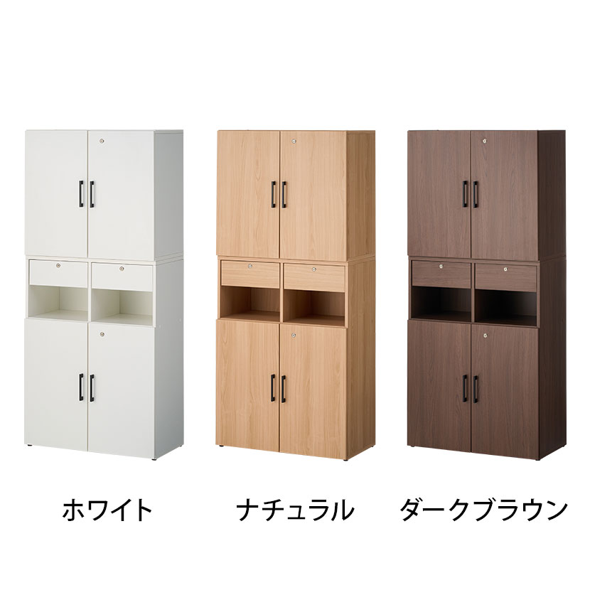 【法人様限定】セルボ2.0 木製キャビネット上下セット 引き出し・扉付き+2列2段扉付き 幅800×奥行446×高さ1778mm 【ホワイト・ナチュラル・ダークブラウン】 |