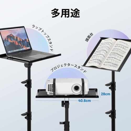【送料無料】プロジェクター台 トレイ折り畳み式 プロジェクタースタンド 59-125cm高さ調整可能 耐荷重10kg オフィス/ホームシアター用 演台ノートPC台 三脚式 業務用 ブラック |