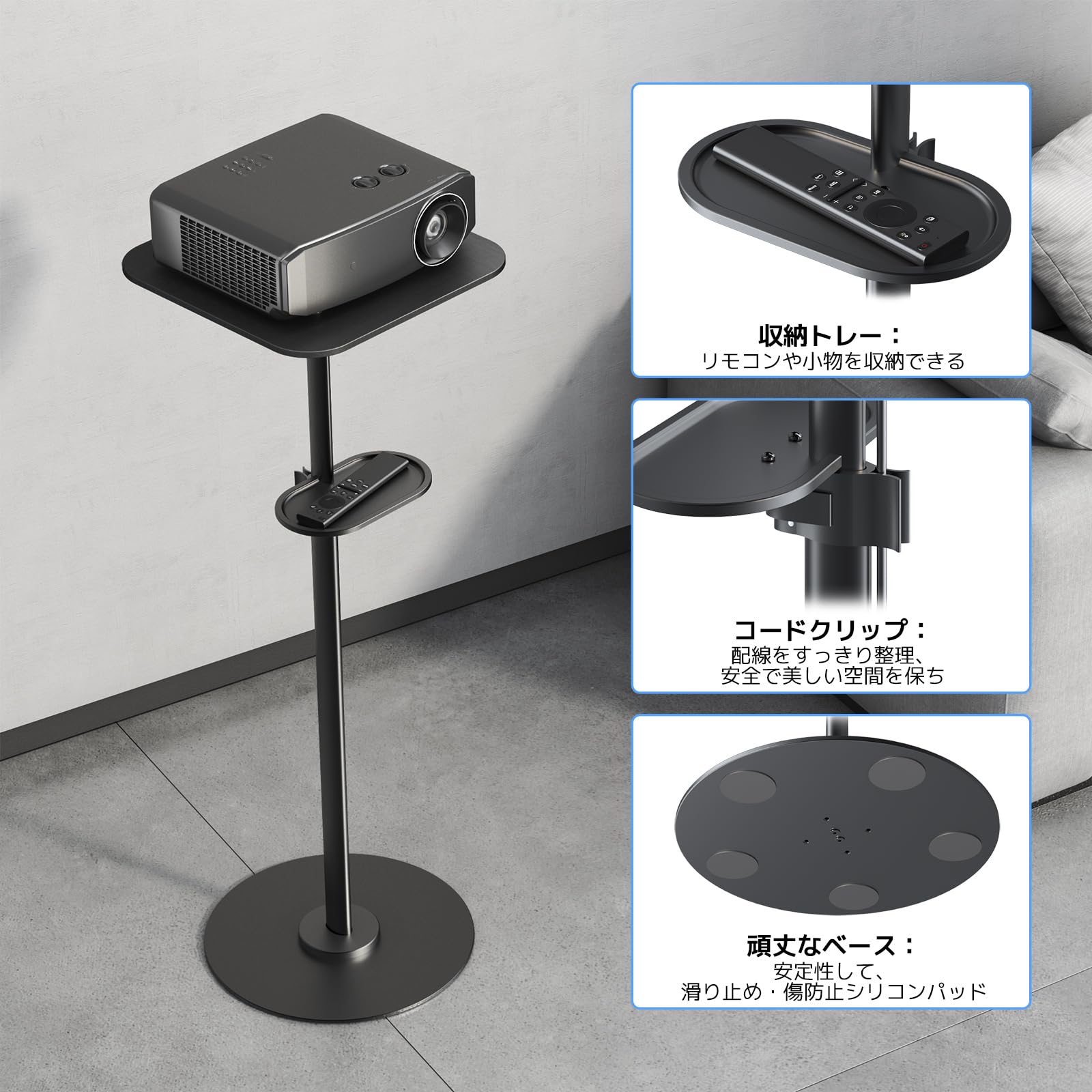 ACCURTEK プロジェクター台 高さ調整可能 70-120cm 収納トレー&コードクリップ付き 金属製 プロジェクタースタンド しっかり安定性 耐荷重5kg ブラック |
