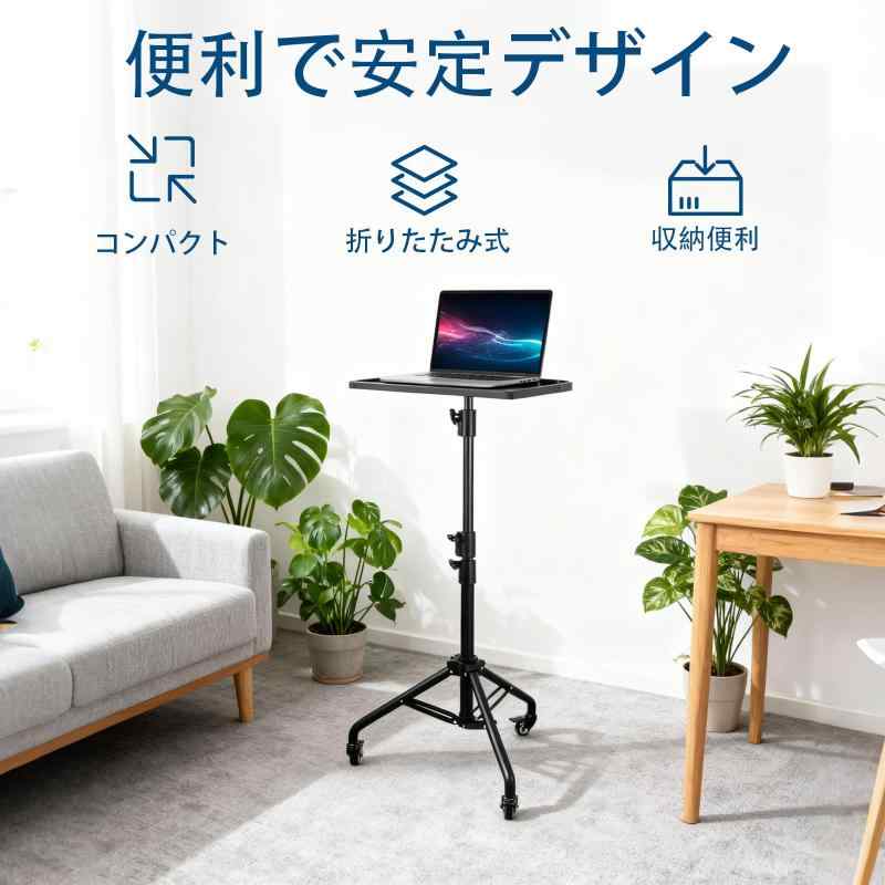 プロジェクター台 調節可能移動式スタンド 高さ・傾斜可変 キャスター付き ノートパソコン・プロジェクター対応 折りたたみ可能 多用途スタンド(会議・家庭娯楽・DJ) |