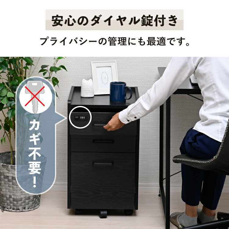 デスクワゴン 鍵付き A4対応 ファイル収納 書類収納 サイドワゴン 幅35cm スリム コンパクト チェスト 引き出し 3段 ダイヤル錠 カギ付き キャスター付き 小物収納 書類整理 SOHO 在宅ワーク オフィス |