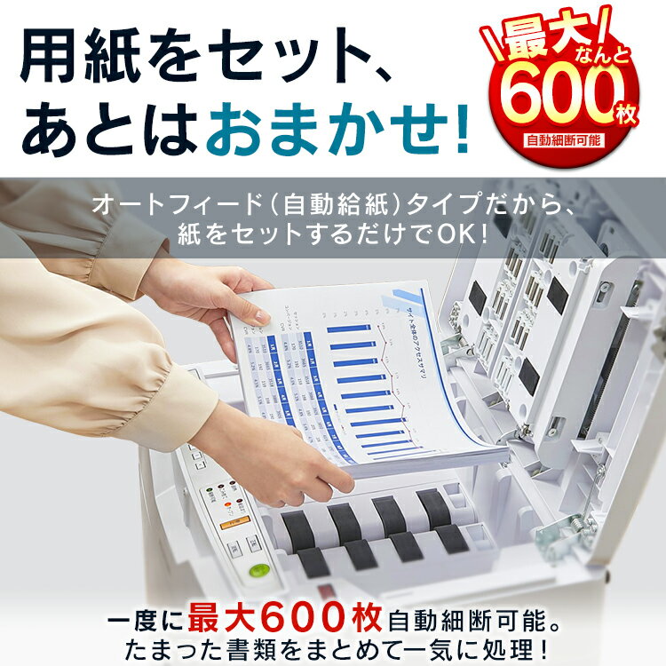 オートフィードシュレッダー 業務用シュレッダー 自動細断 自動給紙110枚 マイクロカット 2×10mm 手差し細断8枚 カード細断 EZ4-PSD061 |