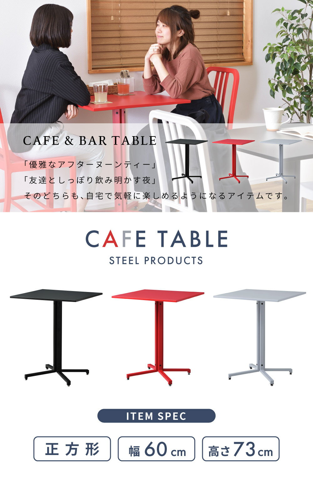 ダイニングテーブル 幅60cm カフェテーブル 高さ73cm 2人用 おしゃれ 四角 正方形 スチール バーテーブル 食卓机 北欧 モダン 人気 シンプル 黒 ブラック インダストリアル お手入れ 簡単 アジャスター オフィス 休憩 作業 送料無料 新生活 |