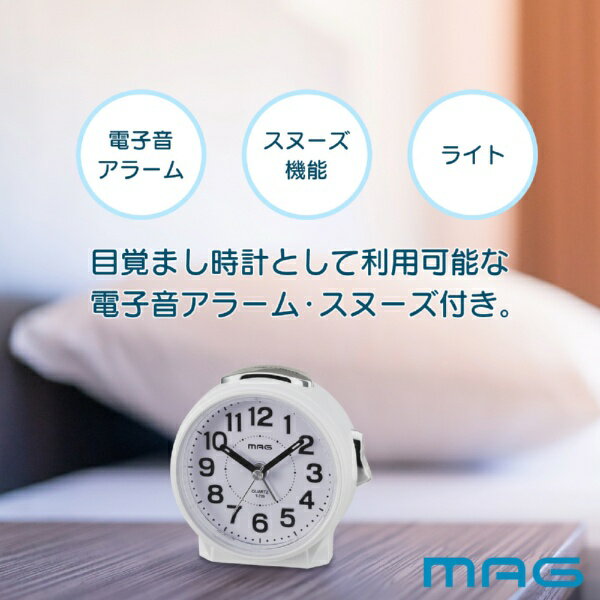 MAG|マグ 明るいライトがクッキリ光る目覚まし時計 ブルーブライト ホワイト T-729 WH-Z [アナログ] |