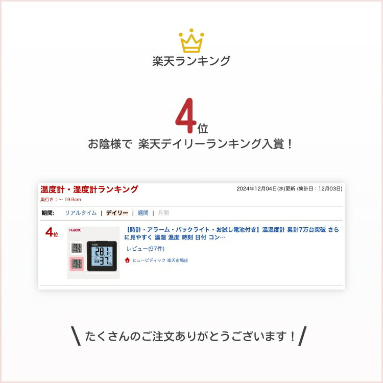 【時計・アラーム・バックライト・お試し電池付き】温湿度計 累計7万台突破 さらに見やすく 温湿 温度 時刻 日付 コンパクト おしゃれ シンプル スヌーズ機能 目覚まし時計 置き時計 置き型 乾燥 インフルエンザ予防 リビング インテリア 室内 寝室 HuBDIC HT-1 |