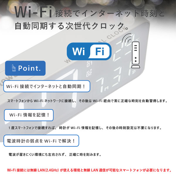 SLOWER LED Wi-fi CLOCK Camino【WiFiクロック 掛け時計 置時計 デジタルクロック 目覚まし時計 アラーム 室温計 カレンダー 多機能】 |