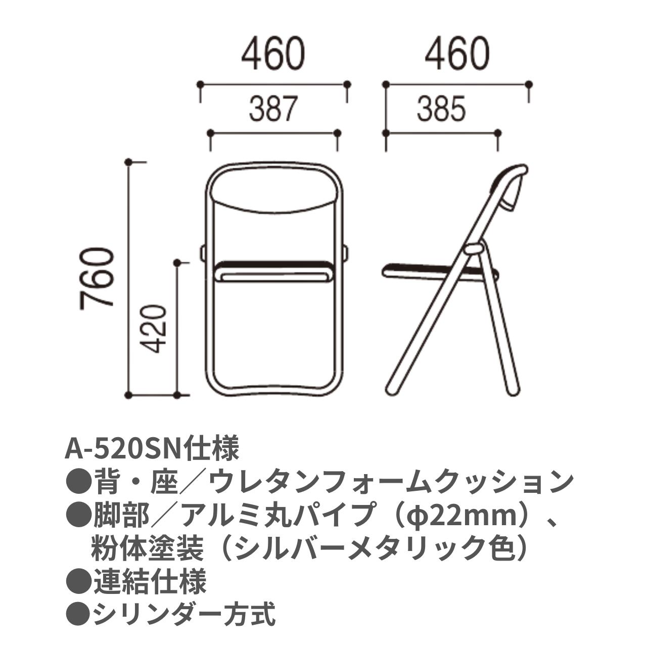 内田洋行 ウチダ UCHIDA 折りたたみ椅子 折りたたみチェア A-520SN ビニールレザー張り アルミ脚 1-313-152 |