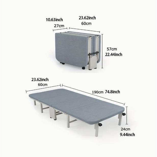 折りたたみベッド、ベッドサイズ190cm×幅60cm×高さ24cm、高反発マットレス付き、シングル、コンパクト収納、四つ折り、簡易ベッド、折りたたみ式、 |
