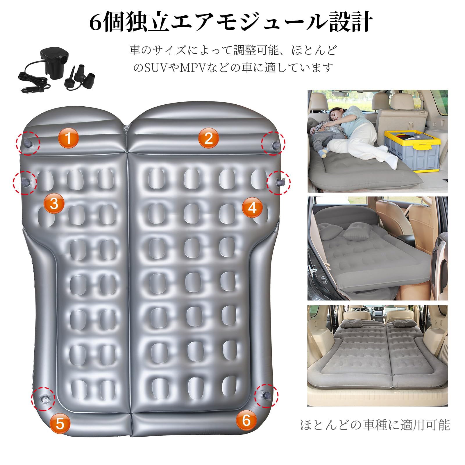 QuaFyco 車中泊マット 車載 エアーマット 約10CM厚さ 車用品 便利グッズ クッション シート カー用品 車内ベッド マットレス トランク 後部座席 折畳み式 車後部座席エアーベッド 枕つき 電気ポンプ と収納袋付き 多用途 車中泊 室内 アウト |