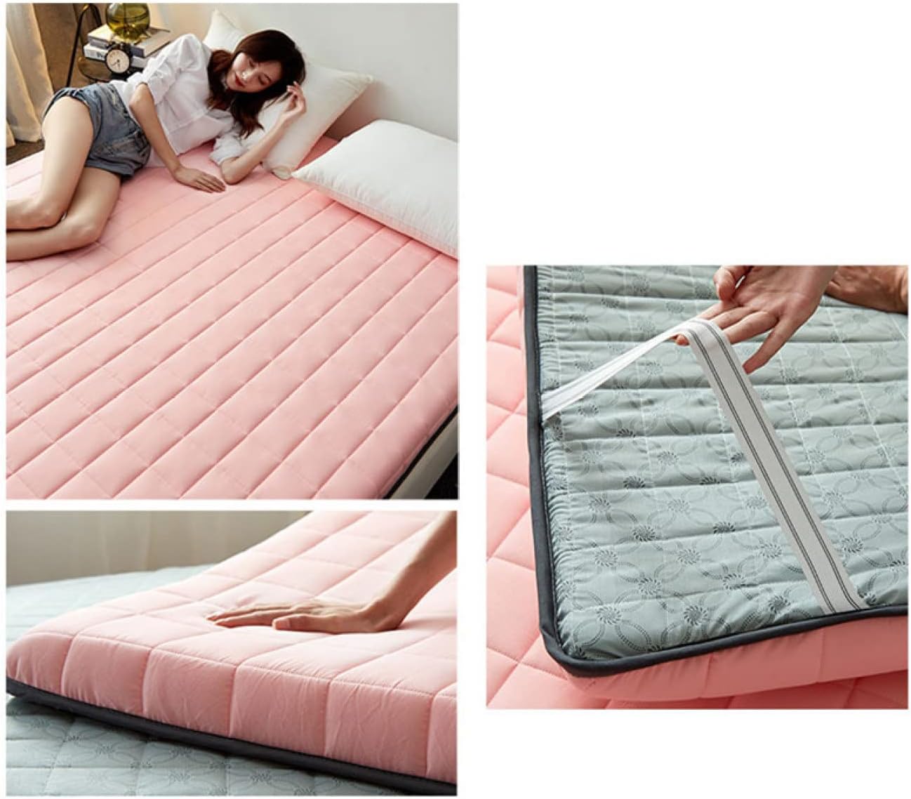 柔らかい 綿 マットレス 和風 敷布団 折り畳み式 巻き上げる ベットマット 敷き布団 シングル 軽量 収納便利 オールシーズン適用 ピンク 敷パパッド ダブル 90x200cm ホテル 自宅用 家族 |